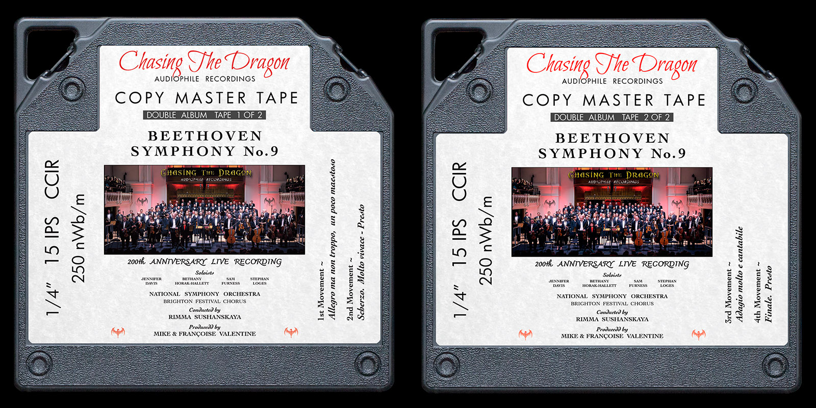 堪稱人類文化瑰寶的第九號交響曲是貝多芬畢生傑作,他於一八一八年開始創作,一八二四年初完成全曲。二O二四年是此曲完成的二百周年,於是追龍唱片決定發行此一偉大交響曲的紀念錄音,用當代最尖端的發燒錄音技術保留此一經典樂曲。在發燒圈早已樹立標竿的追龍唱片之前便推出「現場貝多芬系列」將樂聖的傳奇曲目採用發燒等級的錄音設備以現場錄音的方式留下珍貴錄音,這次選在倫敦的卡杜甘音樂廳錄製此一龐大編制的樂曲,留下臻於完美的傳奇經典!